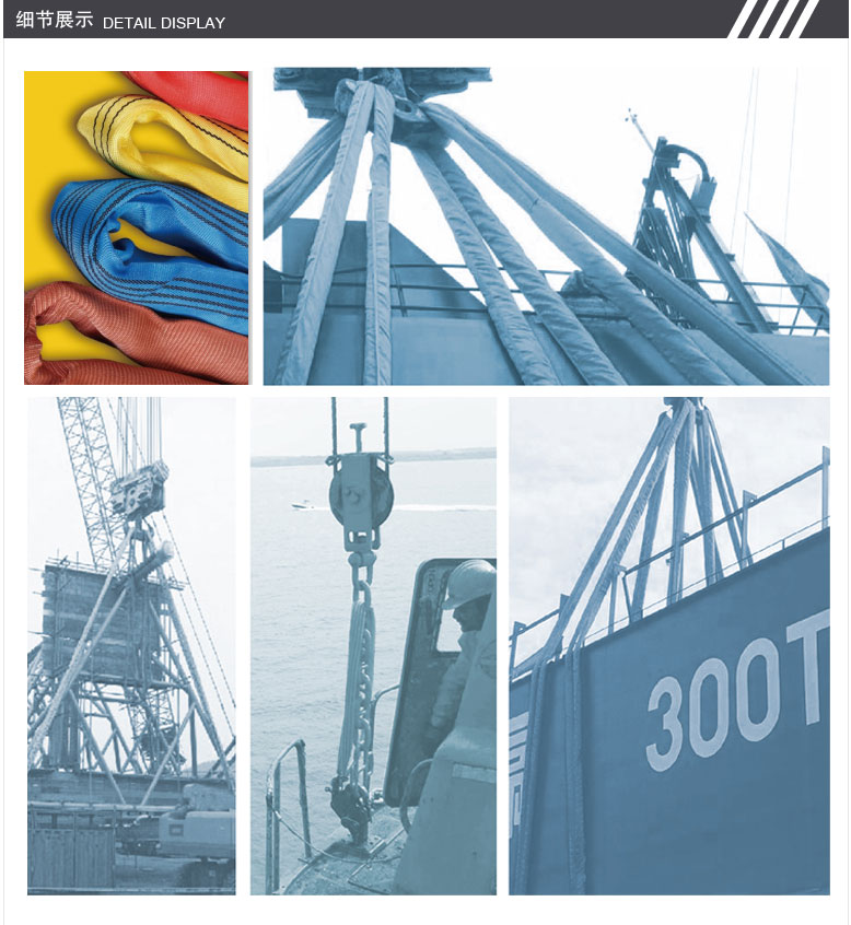 圆形柔性吊装带特别适用于圆环形物体的吊装,吊装带外表面精细,对易损物体不会造成损伤;吊装方式多,也可用于拖拉被吊物;受力均匀,从而使吊装带的工作寿命延长。