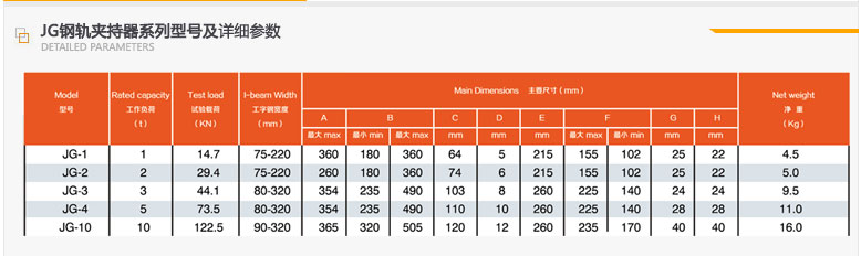产品材质:JG型钢轨夹持器,采用优质低碳合金钢制造,并且采用热处理,使得工字钢机器强度更高,经久耐用。